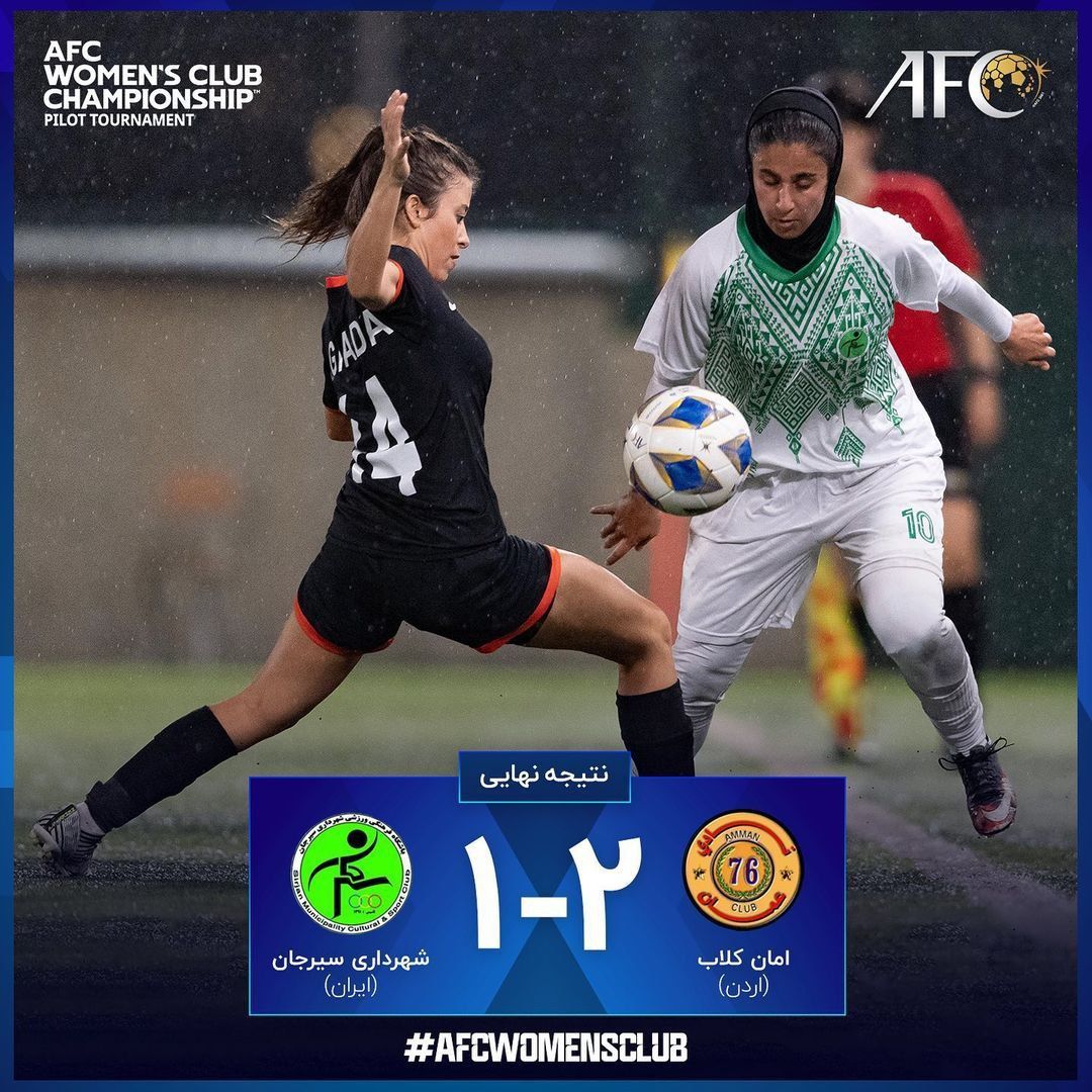 تیم فوتبال زنان شهرداری سیرجان با شکست مقابل امان کلاب اردن به عنوان نایب قهرمانی جام باشگاههای آسیا در منطقه غرب دست پیدا کرد. شهرداری در این بازی با نتیجه ۲-۱ مقابل حریف خود شکست خورد و در اولین تجربه حضور در جام باشگاههای آسیا به مقام نایب قهرمانی رسید.