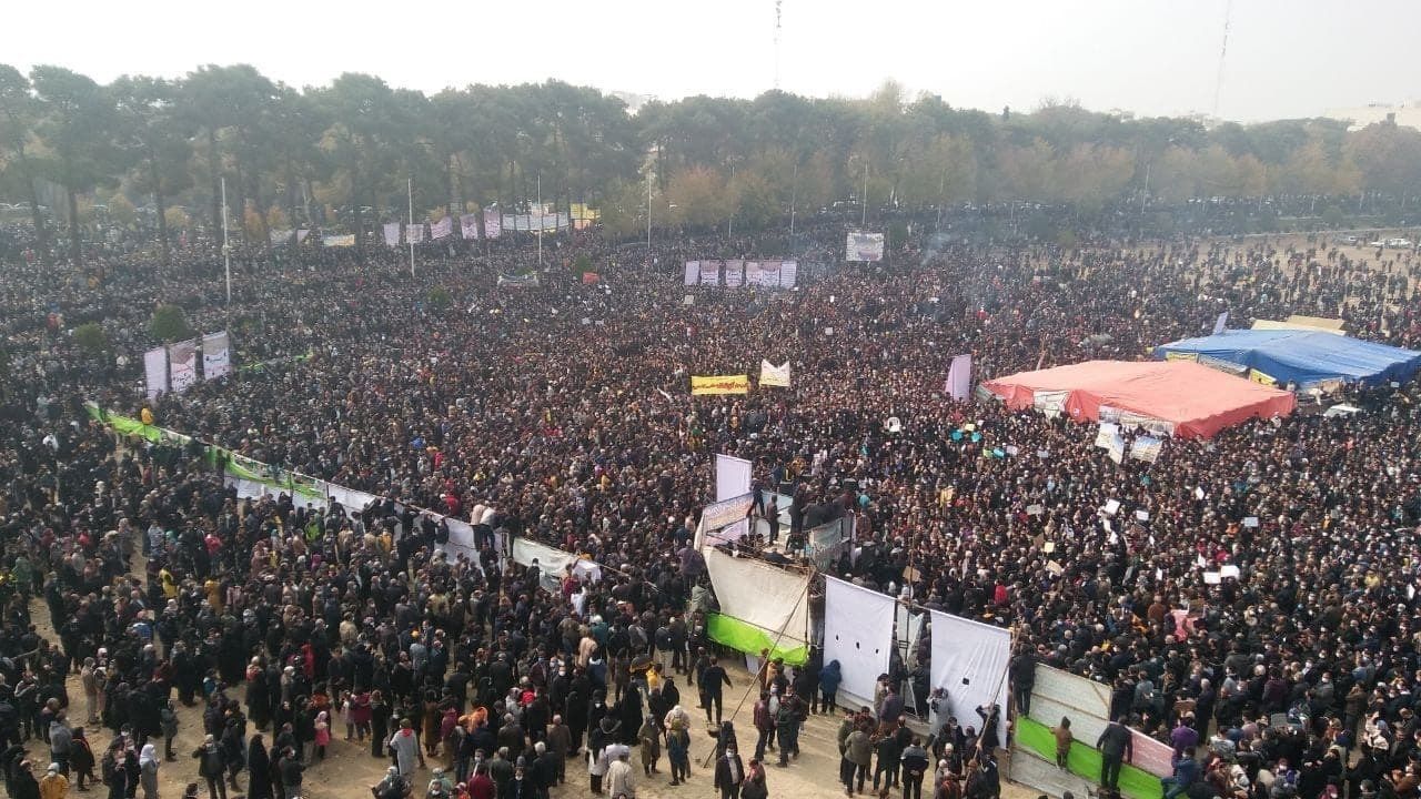 گروه انبوهی از مردم اصفهان روز جمعه در دوازدهمین روز تجمع اعتراضی کشاورزان به آنان پیوستند و در بستر خشک زاینده‌رود و اطراف آن تجمع کردند.