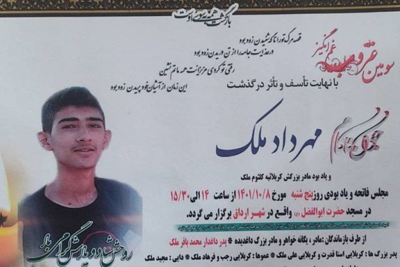 مهرداد ملک، نوجوان ۱۷ ساله، در خودرو با شلیک ماموران گشت انتظامی در قزوین کشته شد