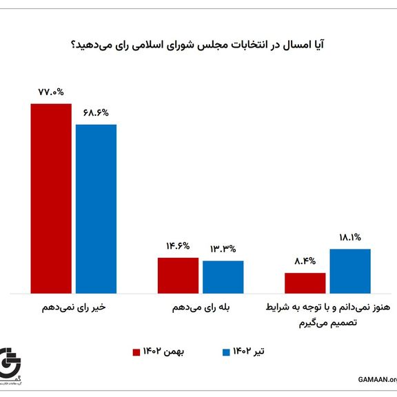 نظرسنجی موسسه گمان: سه چهارم ایرانیان در انتخابات مجلس شرکت نمیکنند