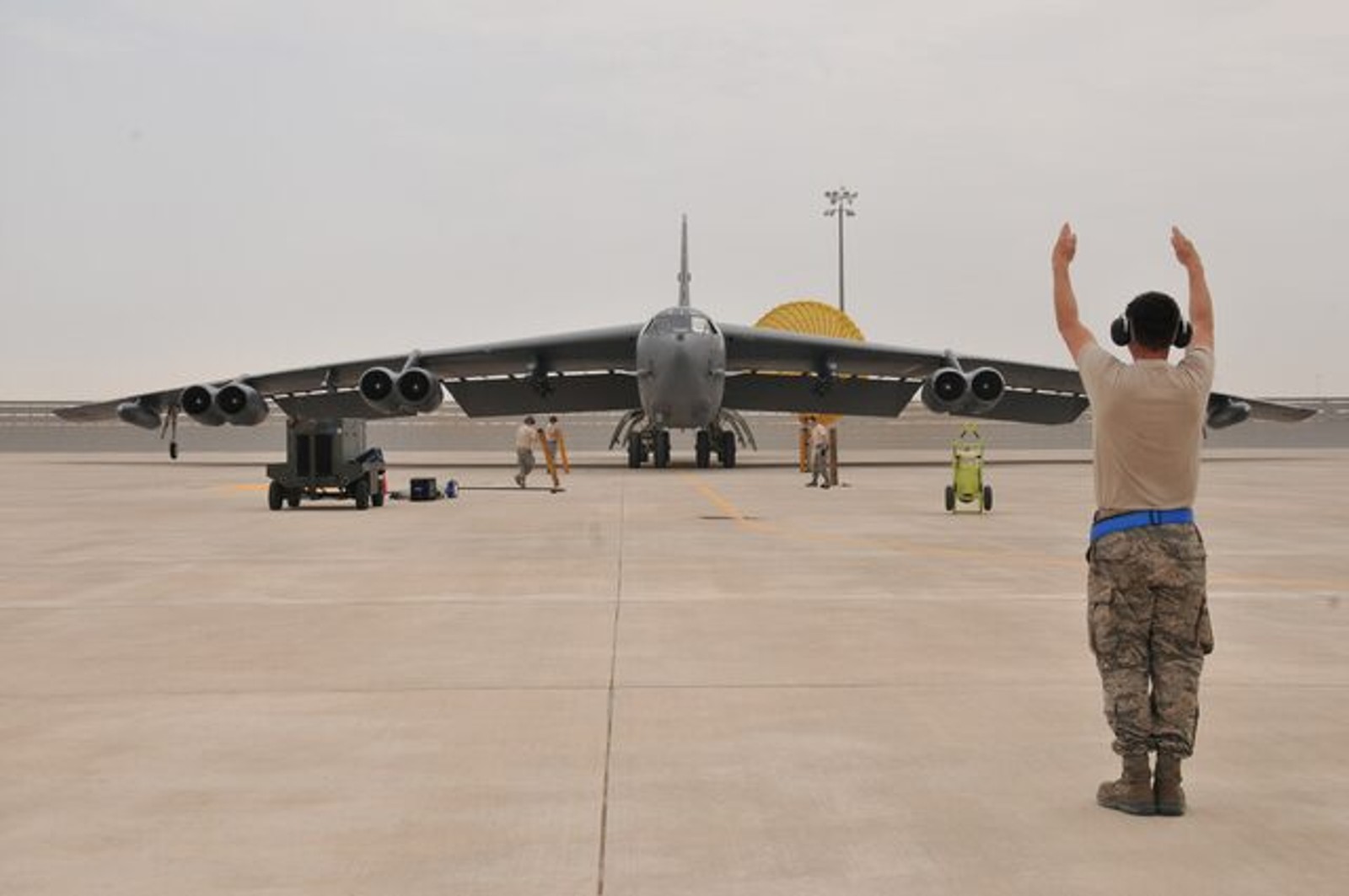 یک بمب‌افکن بی ۵۲ آمریکا در پایگاه هوایی العدید در قطر
