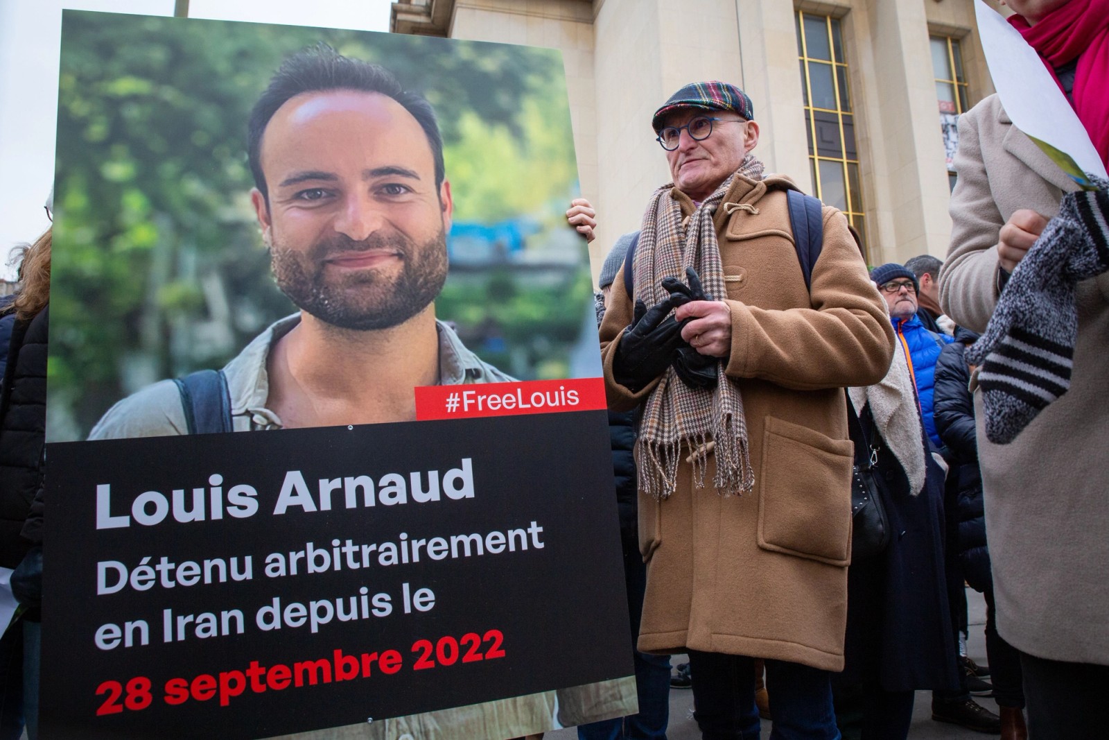 تظاهرات برای آزادی لویی آرنو و دیگر شهروندان فرانسوی زندانی در ایران، پاریس، هشتم بهمن ۱۴۰۱
