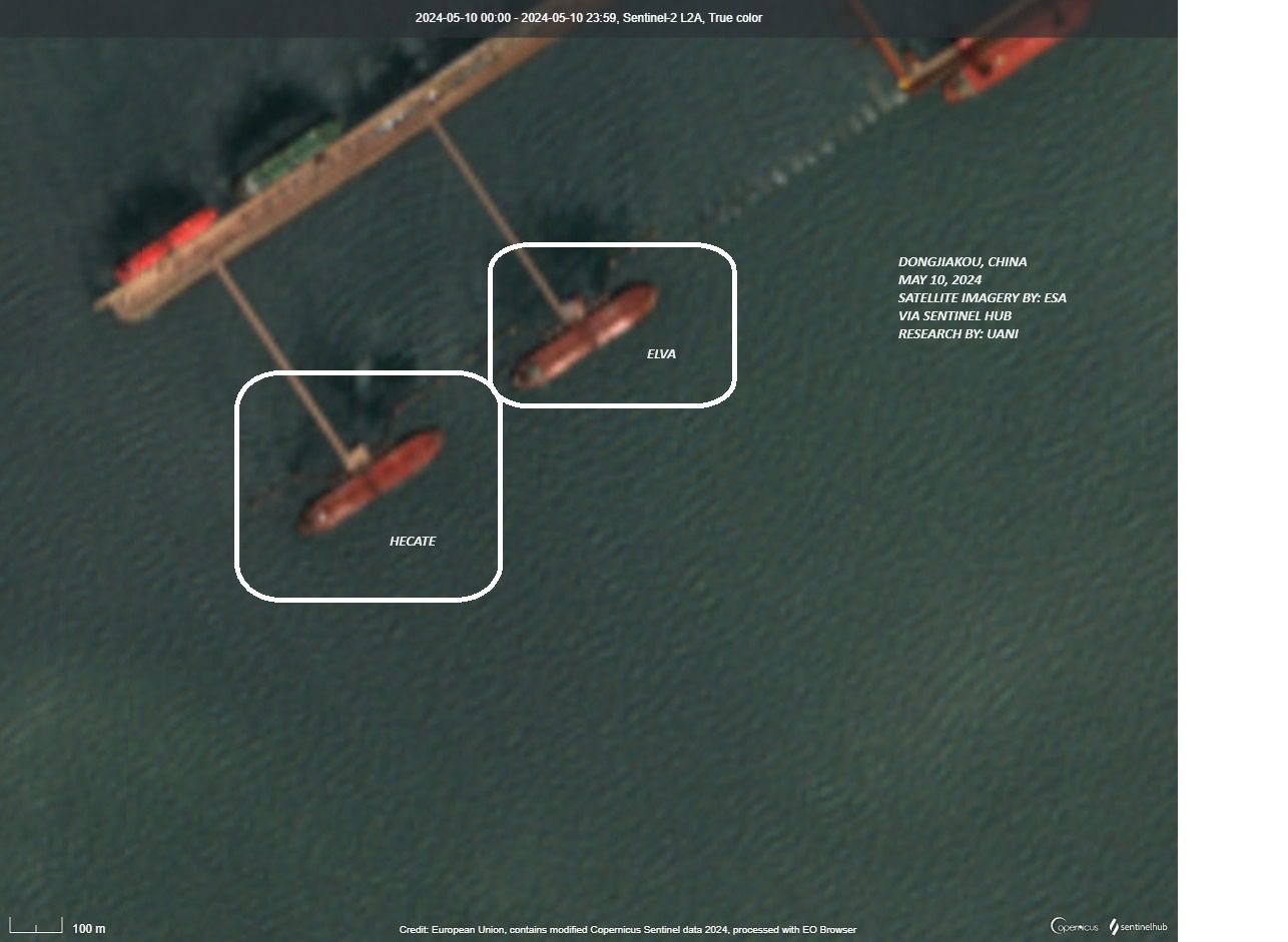 سازمان اتحاد علیه ایران هسته‌ای با استناد به تصاویر ماهواره‌ای اعلام کرد دو نفتکش «هکات» (HECATE) با پرچم کومور و «الوا» (ELVA) با پرچم سائوتومه و پرنسیپ در بندر دانگ‌جیاکو در شرق چین در حال تخلیه نفت تحریم شده ایران هستند.