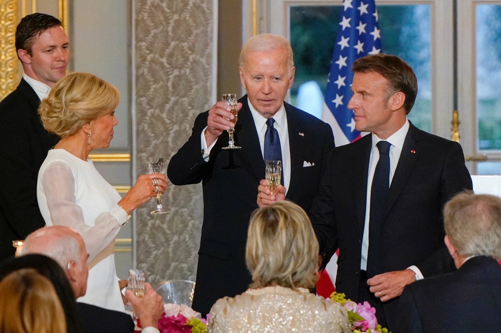 بایدن و مکرون و همسرانشان شامگاه شنبه در یک ضیافت شام رسمی دولتی در الیزه شرکت کردند.