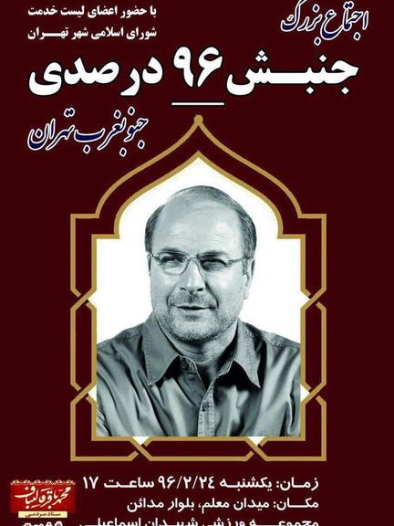 او برای بار سوم سال ۱۳۹۶ وارد عرصه انتخابات ریاست جمهوری شد. اینبار هوادارانش تصاویر او را به دست گرفته و شعار میدادند: «هم خوشگلی، هم بوری-حتما رئیس جمهوری» استراتژی قالیباف در این دور تاکید روی اشرافیگری مقامهای وقت دولت دولت بود. او که لیست اموال خود و خانوادهاش را منتشر کرده بود مدعی بود به نمایندگی از «۹۶ درصد» مردم در مقابل چهار درصد ایستاده است. در این دور انتخابات اسحاق جهانگیری- معاون اول حسن روحانی که نقش کاندید پوششی حسن روحانی را بازی میکرد، با پیش کشیدن نقش قالیباف در ایجاد بانکها و موسسات اعتباری، همچنین واگذاری املاک گرانقیمت بدون دریافت ارزش واقعی آنها، قالیباف را شکست داد. در انتخابات سال ۱۳۹۶، کار قالیباف به رای گیری نکشید و پیش از رایگیری او به نفع ابراهیم رئیسی کنار کشید. بعد از آن قالیباف که رییس مجلس شده بود، دیگر وارد انتخابات سال ۱۴۰۰ نشد.