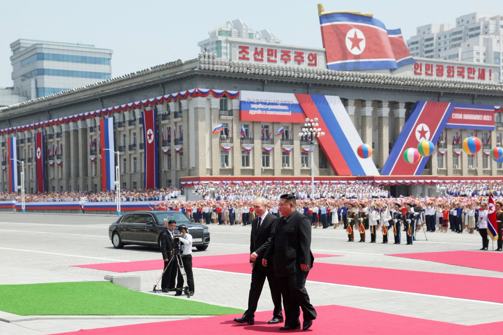 تصاویر پخش شده از سوی رسانه‌های دولتی روسیه نشان می‌دهد که بنرهای بزرگی حاوی تصاویر پوتین در کنار پرچم‌های روسیه در خیابان‌های پیونگ‌یانگ نصب شده است.