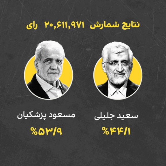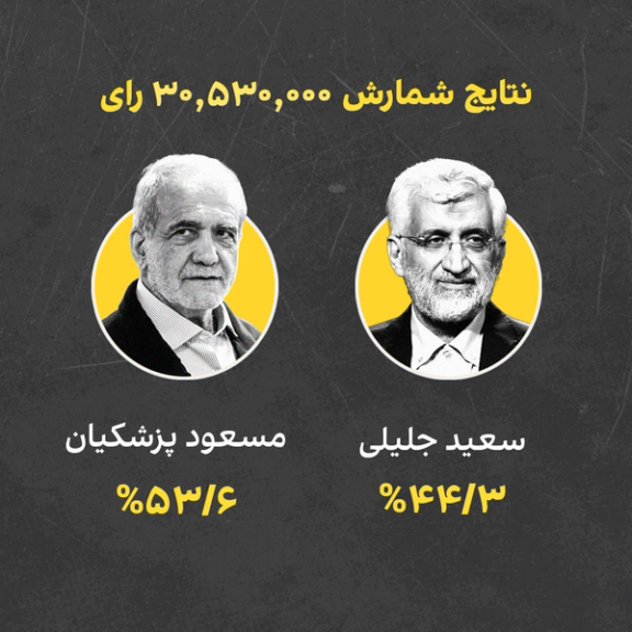 ستاد انتخابات پزشکیان را با ۵۳/۶ درصد آرا به‌عنوان رییس دولت معرفی کرد