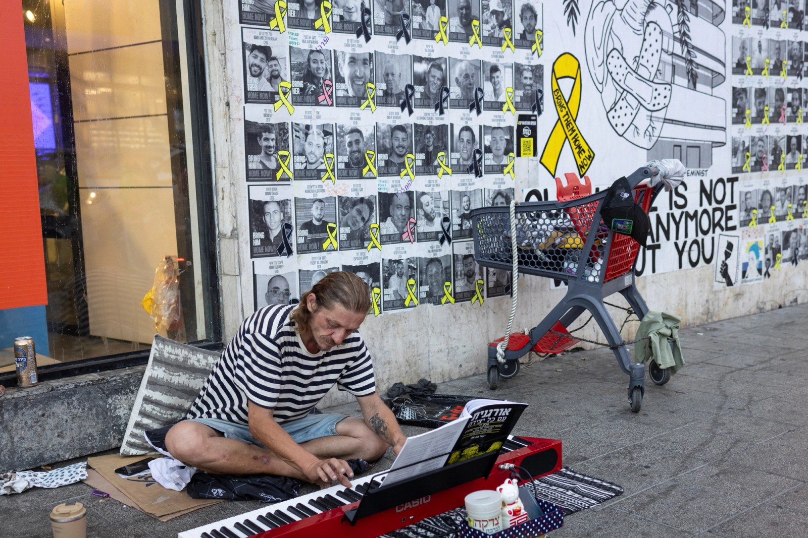 تصاویر گروگان‌های اسرائیلی در بند حماس در خیابانی در تل‌آویو، ۱۸ تیر