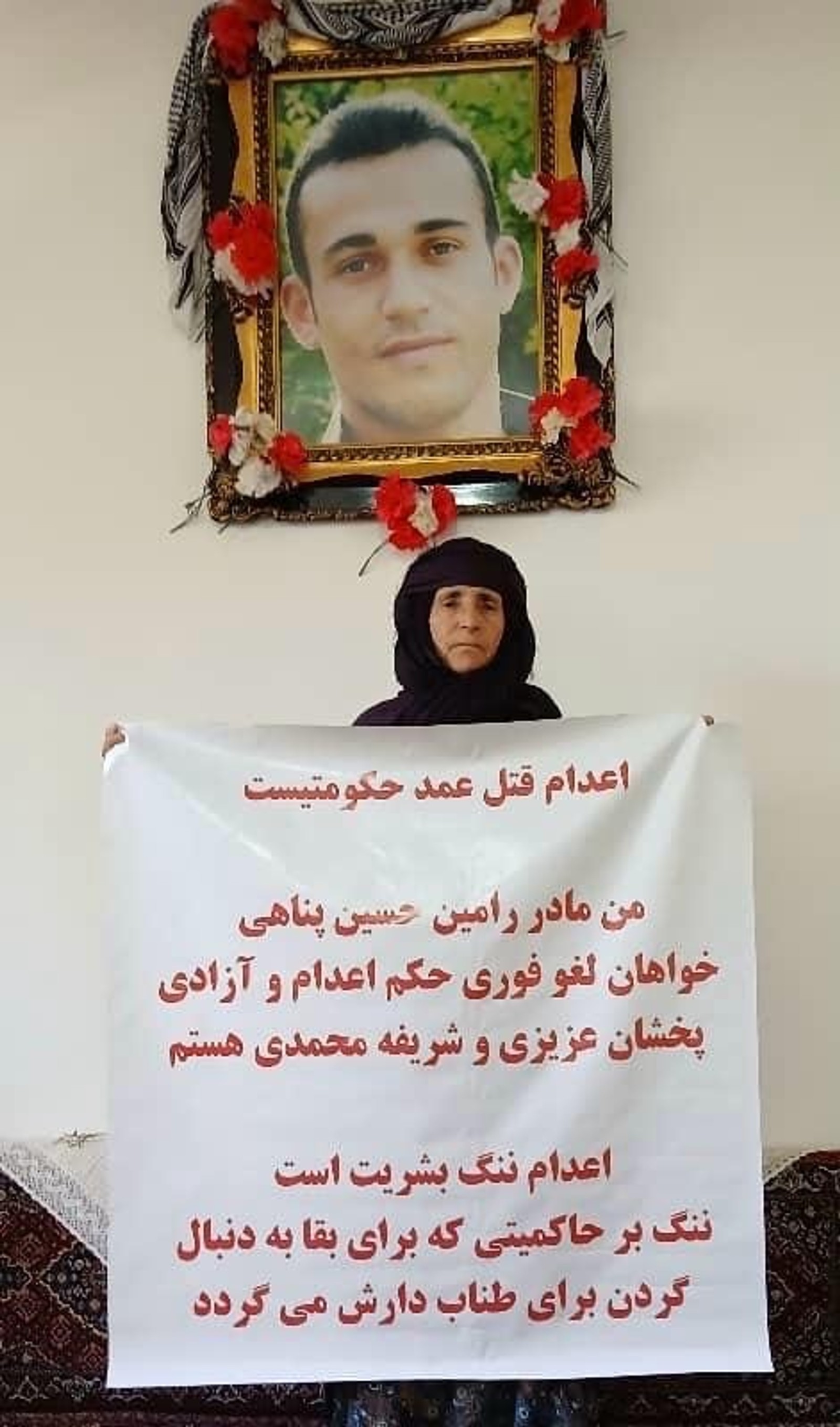 دایه شریفه، مادر رامین حسین‌پناهی، فعال سیاسی اعدام‌شده در پیامی خواهان لغو فوری حكم اعدام و آزادی عزیزی و محمدی شد.
