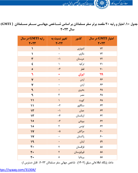 معاونت امور کمیسیونهای تخصصی اتاق بازرگانی، صنایع، معادن و کشاورزی با انتشار گزارشی بر اساس دادههای چند نهاد بینالمللی، از رتبه ۷۳ ایران در شاخص «توسعه گردشگری و سفر» در میان ۱۱۹ کشور جهان خبر داد و اعلام کرد که ایران در میان ۴۰ کشور امن دنیا برای گردشگری نیست.