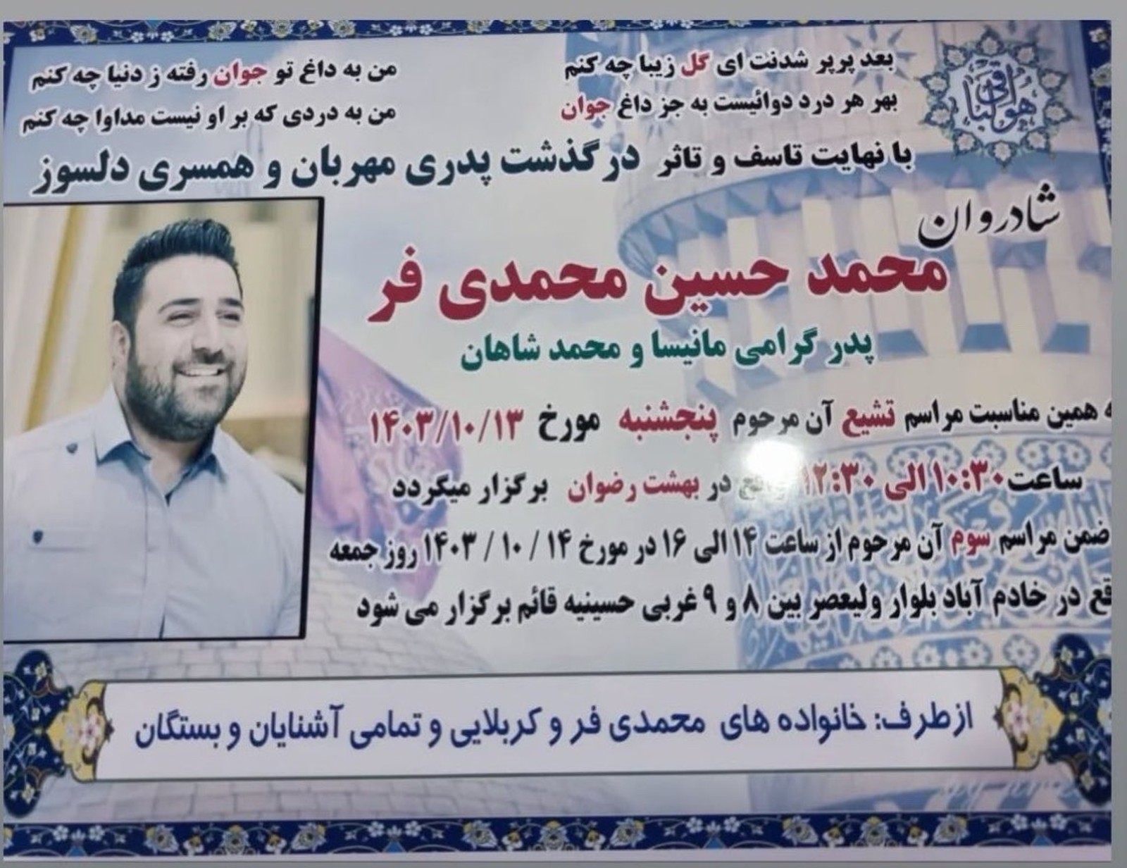 بر اساس اطلاعات رسیده به ایراناینترنشنال، یکی از زندانیان اعدام شده در قزلحصار محمدحسین محمدیفر، متاهل و پدر دو فرزند بوده است.