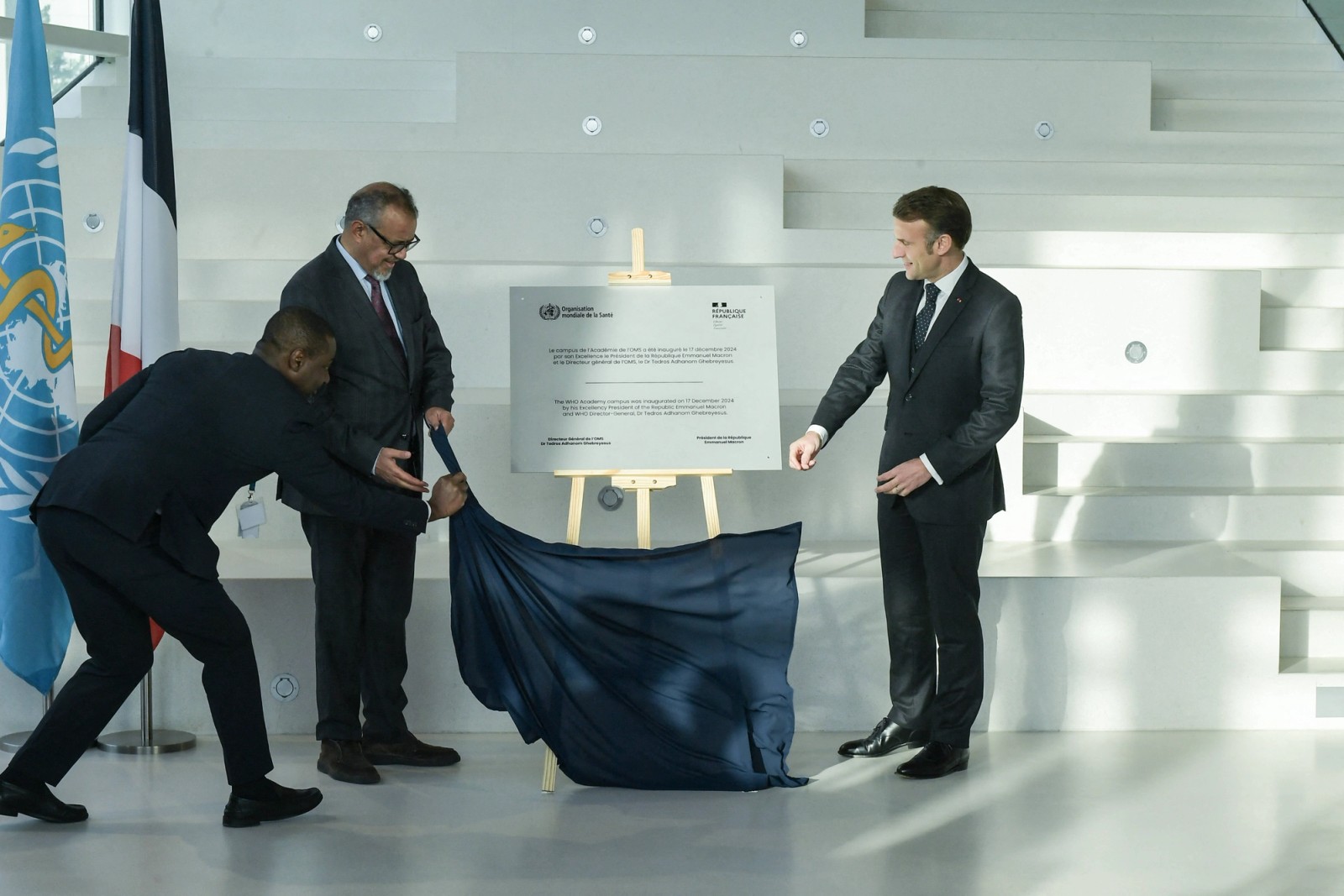 تدروس آدهانوم گبریسوس، مدیر کل سازمان بهداشت جهانی و امانوئل مکرون، رییس‌جمهوری فرانسه
