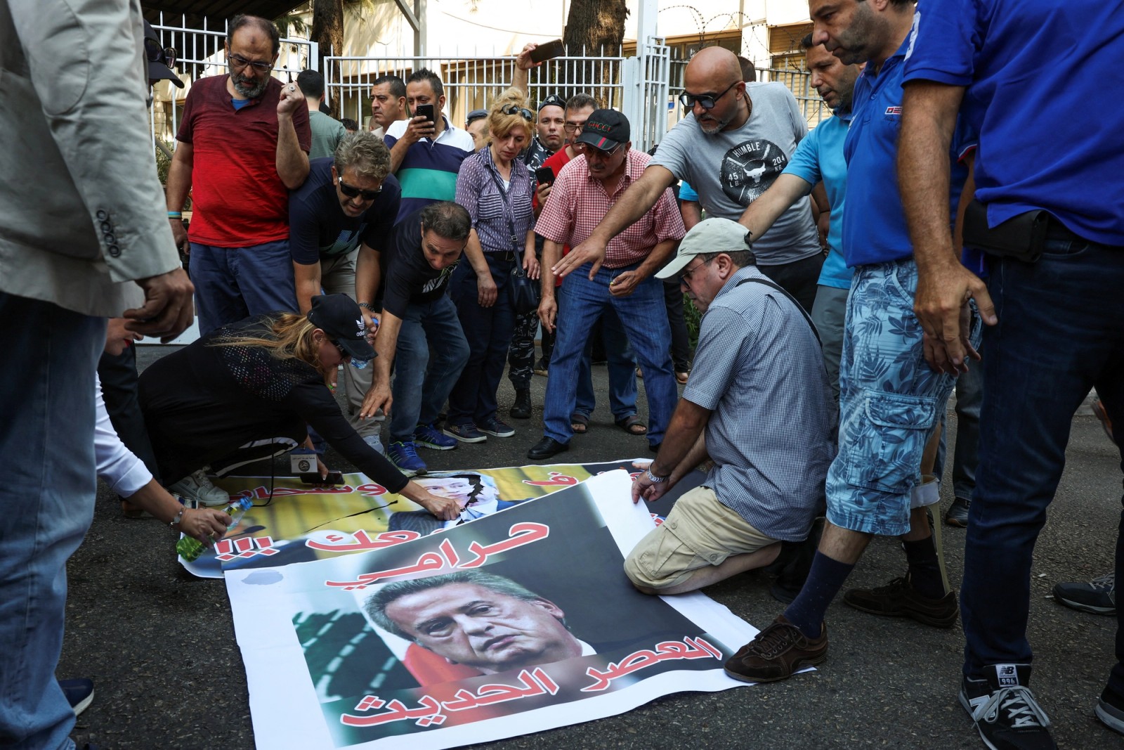 تجمع در بیروت در سال ۱۳۹۹ و آتش زدن عکس ریاض سلامه، رییس بانک مرکزی لبنان