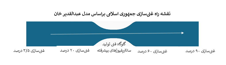 فرایند غنیسازی اورانیوم در جمهوری اسلامی، بر پایه نقشه راهی طراحی شده که از مدل عبدالقدیر خان، پدر برنامه هستهای پاکستان، الهام گرفته است، مسیری پلکانی و مرحله به مرحله که با غنیسازی ۳.۵ درصدی برای مصارف نیروگاهی آغاز شد.