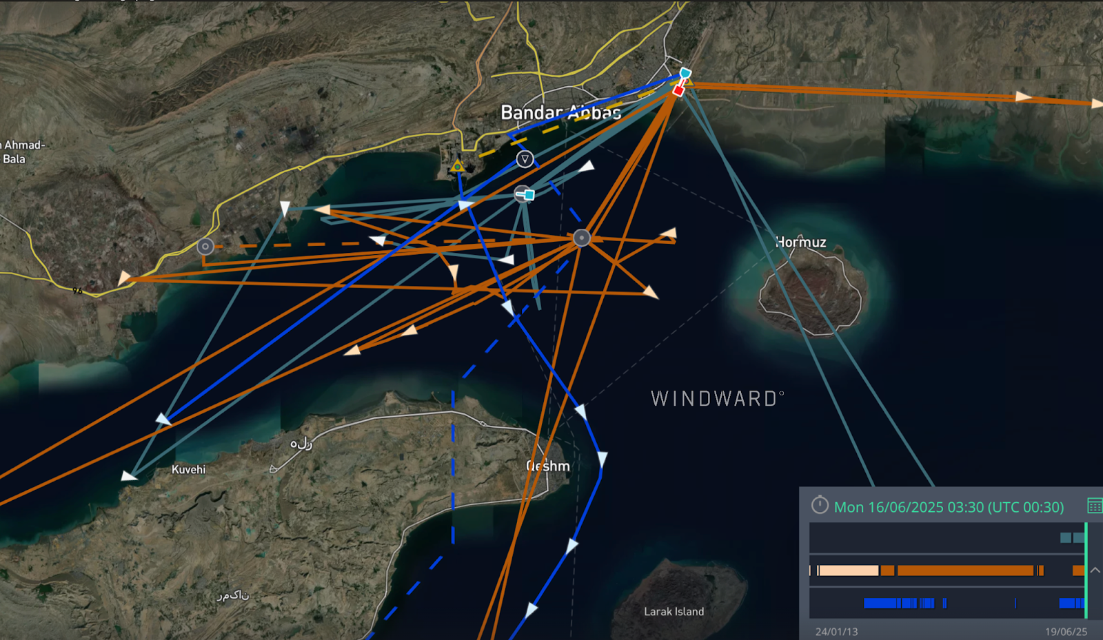 اختلال جی‌پی‌اس باعث شد سیگنال‌های سامانه شناسایی خودکار (AIS) کشتی‌ها به‌اشتباه نشان دهد که آن‌ها هنگام عبور از تنگه هرمز، در خشکی ایران قرار دارند