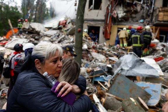ولودیمیر زلنسکی، رییسجمهوری اوکراین، ویدیویی از ویرانههای در حال سوختن منتشر کرد و گفت که هنوز افرادی زیر آوار یک ساختمان مسکونی گرفتار هستند.