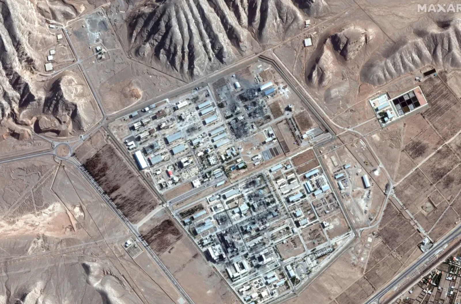 نمایی ماهواره‌ای از مرکز تحقیقات هسته‌ای اصفهان و تونل‌های اطراف آن، ۳ تیر ۱۴۰۴