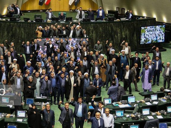 نمایندگان مجلس در صحن علنی تجمع کردند و شعار «مرگ بر آمریکا» و «مرگ بر اسرائیل» سر دادند