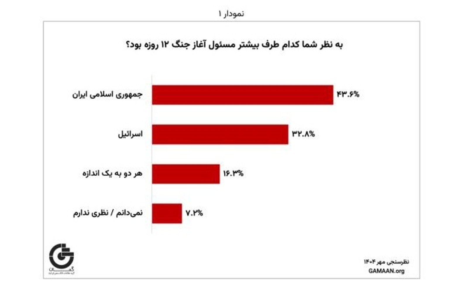 در پی جنگ ۱۲ روزه جمهوری اسلامی و اسرائیل، موسسه گمان (گروه مطالعات افکارسنجی ایرانیان) با انتشار نتایج نظرسنجی تازه‌ای، تصویری کم‌سابقه از دیدگاه‌های شهروندان ایرانی درباره این درگیری، ابعاد نظامی آن، مواضع داخلی و خارجی و آینده جمهوری اسلامی ارائه کرد.