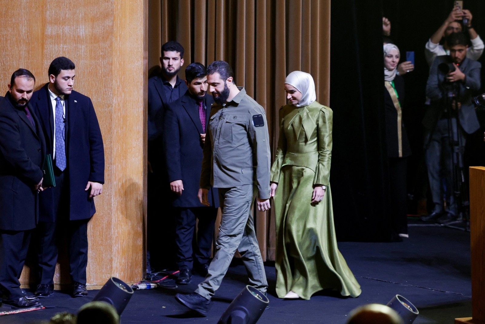 الشرع که اکنون رییس‌جمهوری موقت سوریه است، بامداد دوشنبه در مسجد اموی دمشق با لباس نظامی حاضر شد و نماز صبح را اقامه کرد.