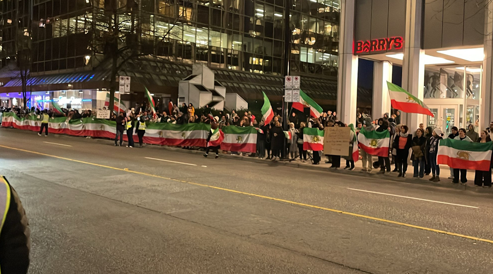 جمعی گسترده از ایرانیان ساکن ونکوور کانادا برای چهارمین شب پیاپی با تجمع مقابل کنسولگری آمریکا و تشکیل زنجیره انسانی و نمایش پرچمهای شیر و خورشید، خواستار حمایت از انقلاب ملی ایرانیان شدند.