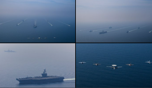 ستاد فرماندهی مرکزی آمریکا، سنتکام، در ایکس تصاویری از حرکت گروه ضربت ناو هواپیمابر آبراهام لینکلن به‌همراه دو کشتی تدارکاتی نظامی و دو شناور گارد ساحلی آمریکا در دریای عرب و پرواز هواپیماهای نظامی آمریکا بر فراز آن‌ها منتشر کرد و نوشت: «صلح از مسیر قدرت»