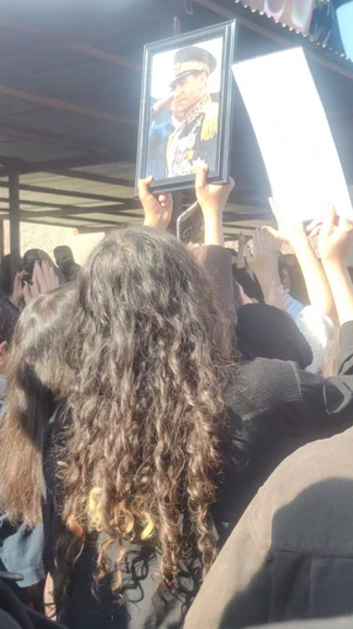 تصویر رسیده به ایراناینترنشنال نشان میدهد یکی از حاضران در آیین گرامیداشت جاویدنامان در نورآباد ممسنی، عکس محمدرضا شاه پهلوی را در دست دارد.