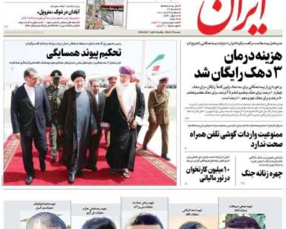 في شأن آخر اهتمت صحف أخرى بزيارة الرئيس الإيراني، إبراهيم رئيسي، إلى سلطنة عمان، وكتبت صحيفة "اقتصاد آينده" في المانشيت: "ترحيب ودي لسلطان عمان من رئيسي".