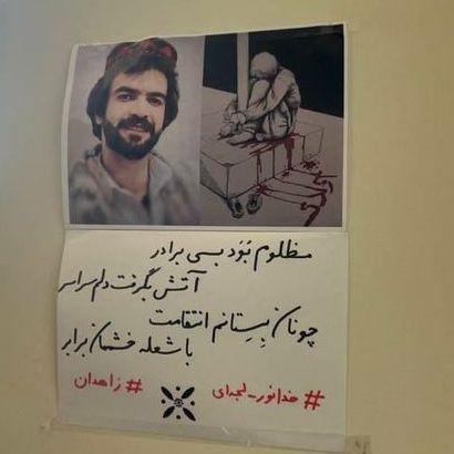 وكان خدانور لجه إي (27 عاما) قد أصيب في احتجاجات زاهدان بمحافظة سيستان-بلوشستان، جنوب شرقي إيران، قبل يوم من جمعة زاهدان الدامية، في 30 سبتمبر (أيلول)، وتوفي في الثاني من أكتوبر (تشرين الأول) الماضي.