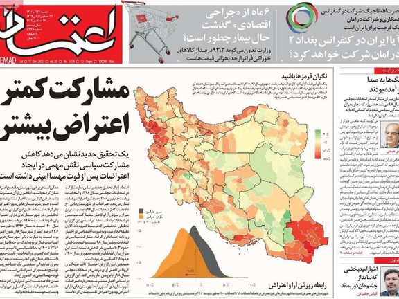 في تقرير لها حول مدى اتساع الاحتجاجات الجارية في إيران ذكرت صحيفة "اعتماد" أن المدن التي شهدت أكثر نسبة من المظاهرات المناهضة للنظام هي تلك التي شهدت أقل نسبة من الحضور والمشاركة في الانتخابات الرئاسية العام الماضي وكذلك الانتخابات البرلمانية عام 2020، موضحة أن هذا الأمر يكشف مدى يأس المواطنين من إصلاح الأوضاع السياسية وكيف أنهم باتوا لا يعولون في التغيير على الانتخابات.
