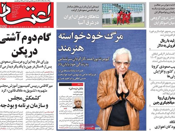 جدل الحجاب والتطورات الإقليمية والدولية المتعلقة بإيران، بالإضافة إلى انتحار مخرج إيراني شهير كانت محور تغطية الصحف الإيرانية الصادرة اليوم الخميس 6 أبريل (نيسان).
