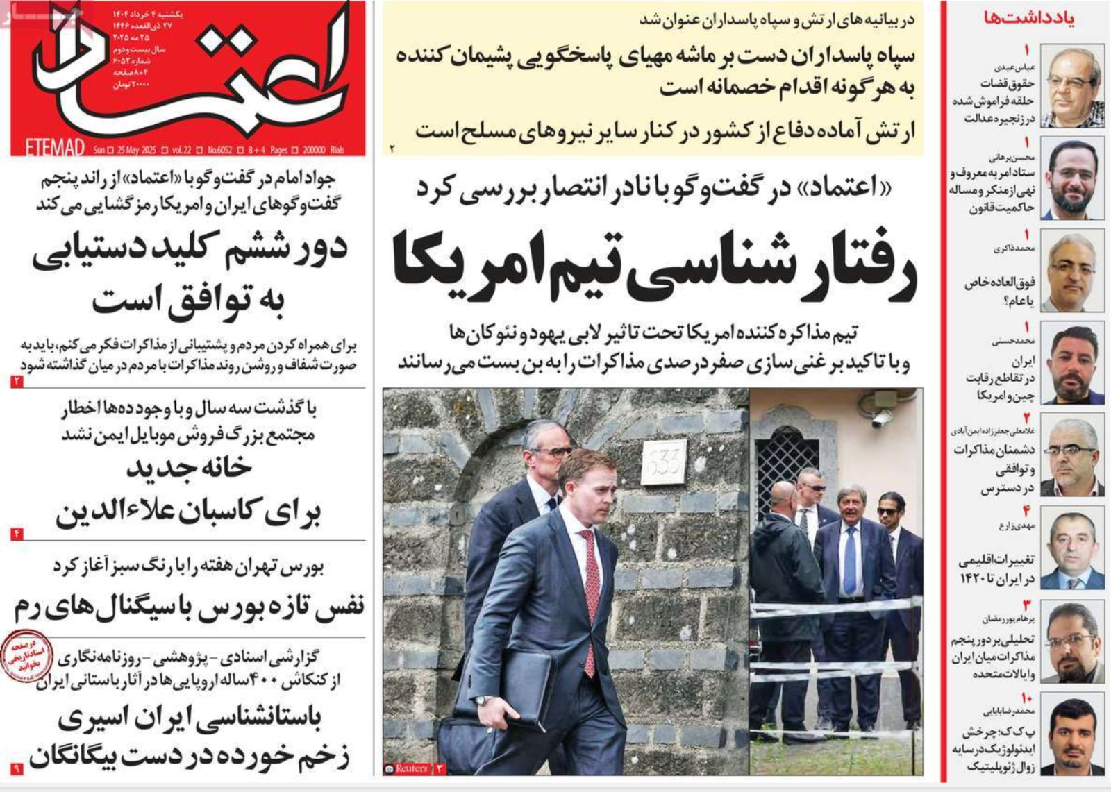 ما زالت قضية المفاوضات بين إيران والولايات المتحدة تتصدر عناوين الصحف الإيرانية الصادرة اليوم الأحد 25 مايو (أيار)؛ خاصة بعد انتهاء الجولة الخامسة دون تحقيق إنجاز ملموس، كما سلطت الصحف الضوء على أزمات نقص حليب الأطفال، وارتفاع أسعار السلع الغذائية، وأزمات الكهرباء والتعليم.