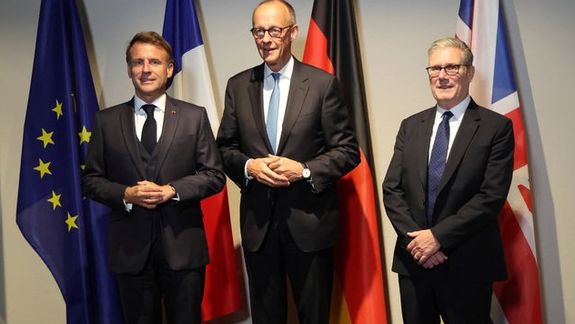 وفي بيان مشترك صدر اليوم الجمعة 10 أكتوبر (تشرين الأول) 2025، شدّد الرئيس الفرنسي إيمانويل ماكرون، وكير ستارمر، رئيس وزراء بريطانيا، وفريدريش ميرتس، المستشار الألماني، على أن "البرنامج النووي الإيراني يشكّل تهديدًا خطيرًا للسلام والأمن العالميين".