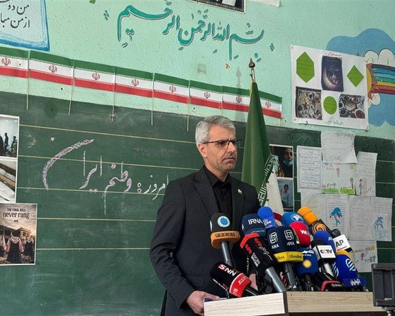عُقد المؤتمر الصحفي للمتحدث باسم وزارة الخارجية الإيرانية، إسماعيل بقائي، داخل أحد الفصول الدراسية في مدرسة بطهران، قالت وسائل إعلام إيرانية إنها تضررت جراء الهجمات الأخيرة. ووفقًا للتقرير، أُقيم المؤتمر في مدرسة "الشهيد محلاتي" عند تقاطع آبسردار بطهران.
