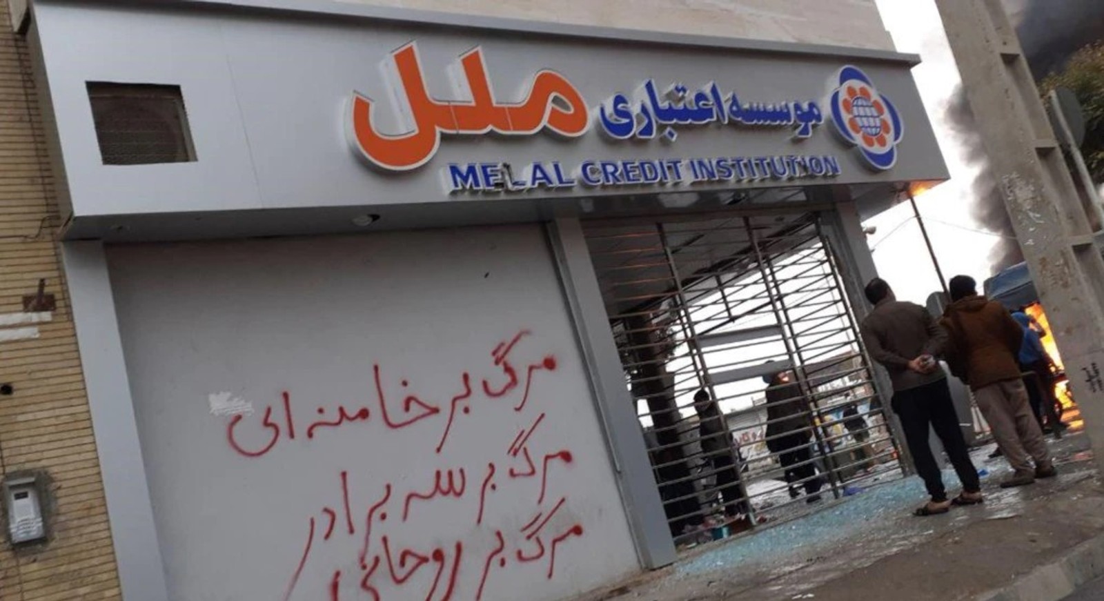 A government bank ransacked in November 2019, and 'Death to Khameni' sprayed.