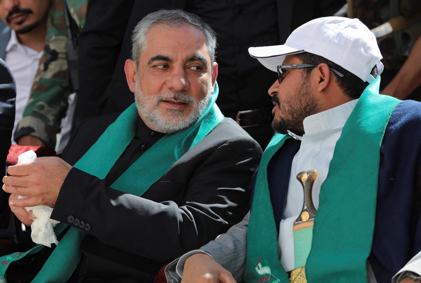 Hassan Irloo (L) with a Houthi official in Sanaa on January 2, 2021