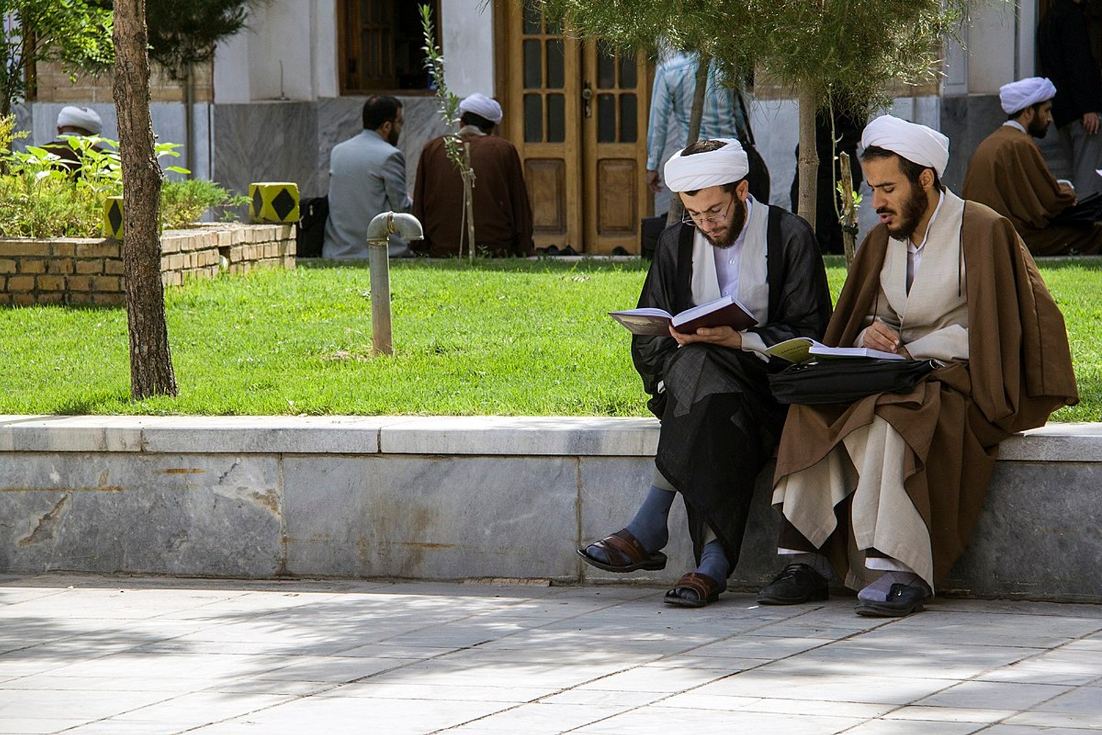 Clerical students usually put on a shirt without a collar and a pair of regular pants – no jeans. Putting on the robe and the turban is a turning point in the life of a young cleric. The turban or ammameh must be placed on the young cleric's head by a prominent clergyman or one highly respected by the students at the madrassah.