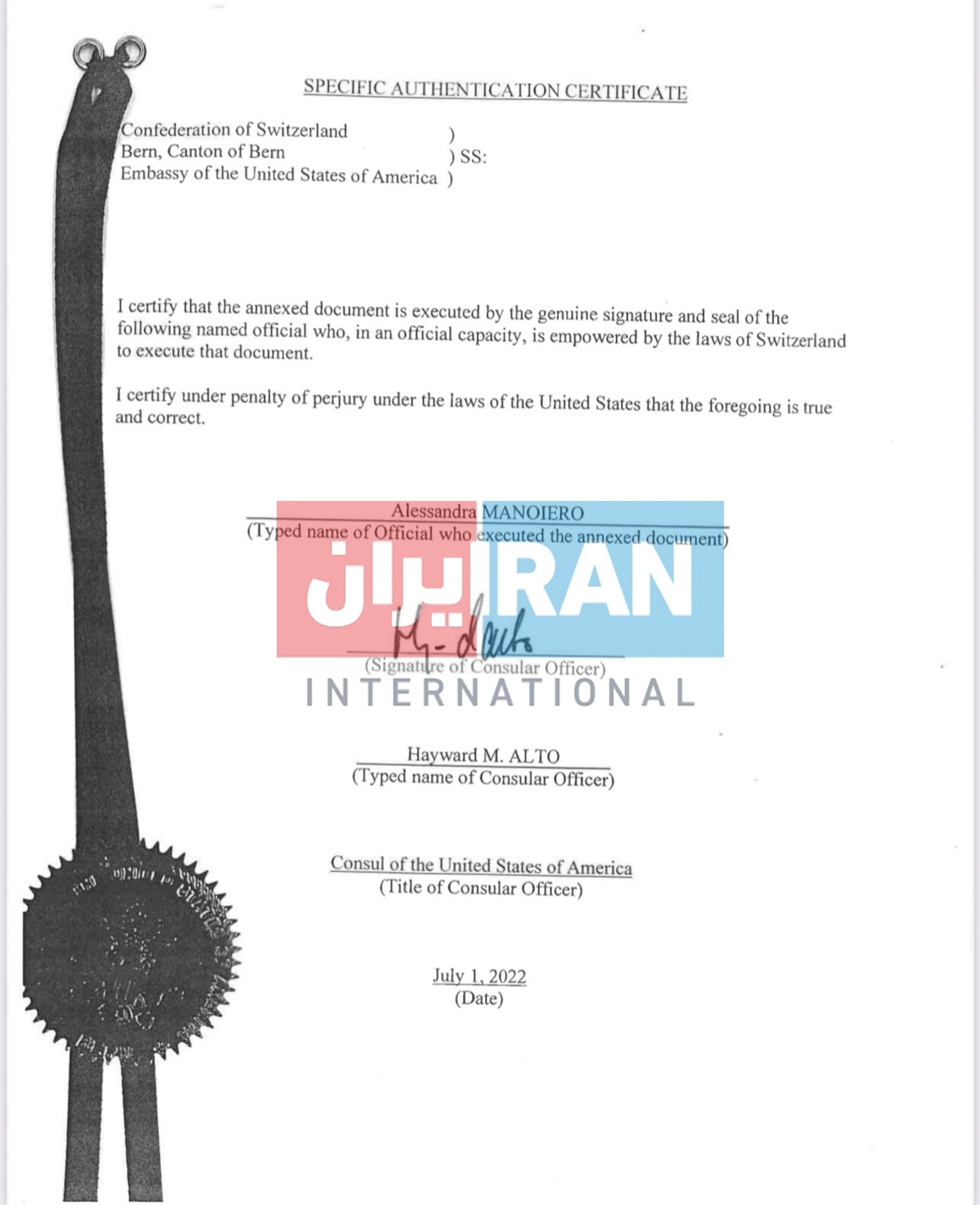 According to a document obtained by Iran International, the Swiss embassy in Tehran which represents US interests has officially informed the Iranian government of the lawsuit.