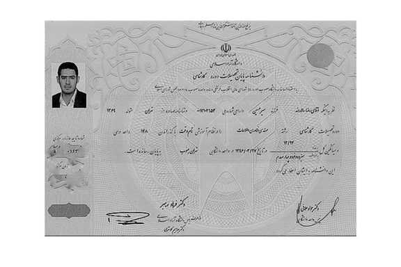 The 30-year-old with a bachelor’s degree in information technology engineering from the South Branch of Tehran’s Azad University with a lower-than-average grade of 13, according to his BS certificate, which was also released by Lab-Doukhtegan.