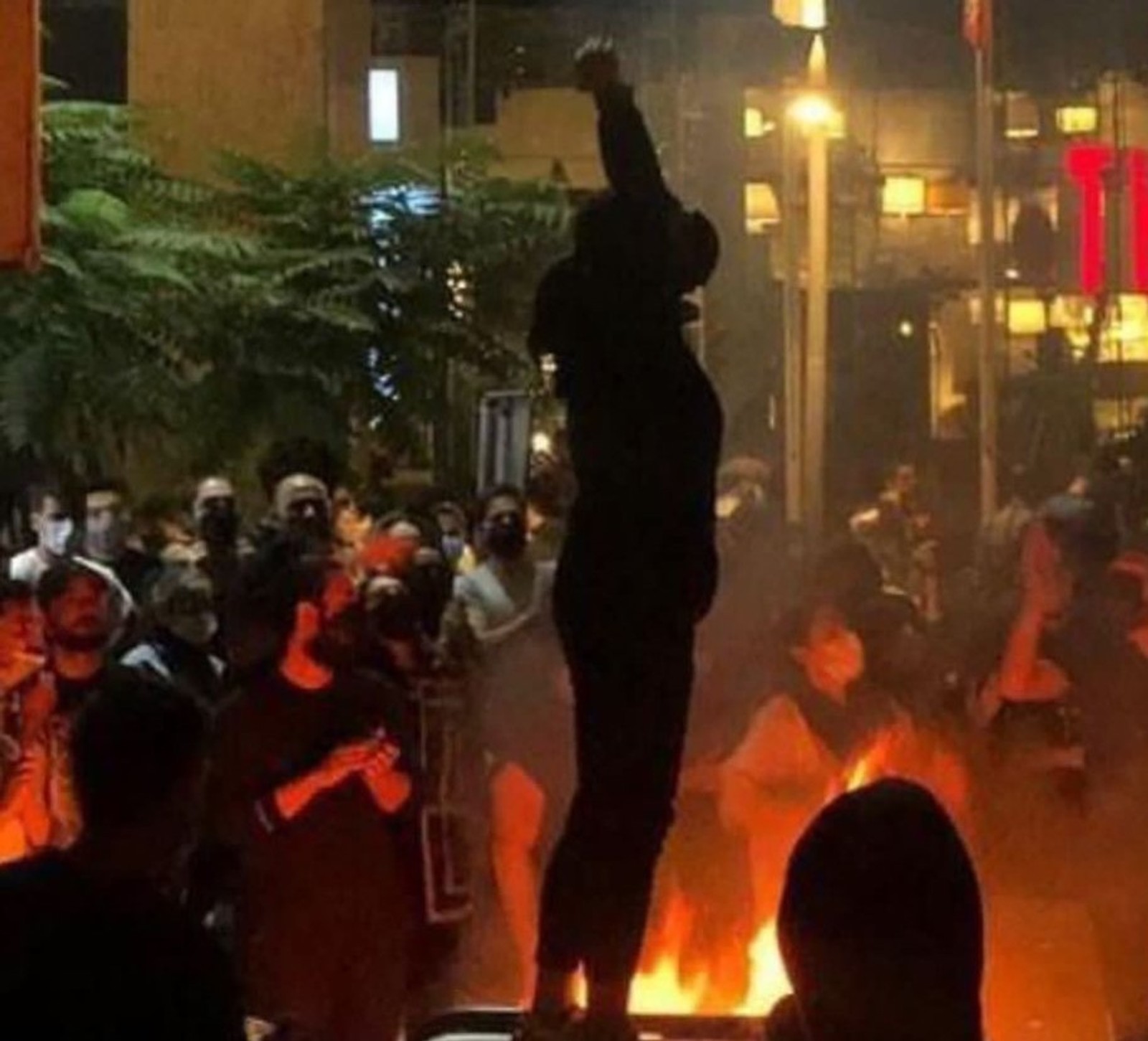 Young protesters taking over the streets at night in Tehran. September 27, 2022