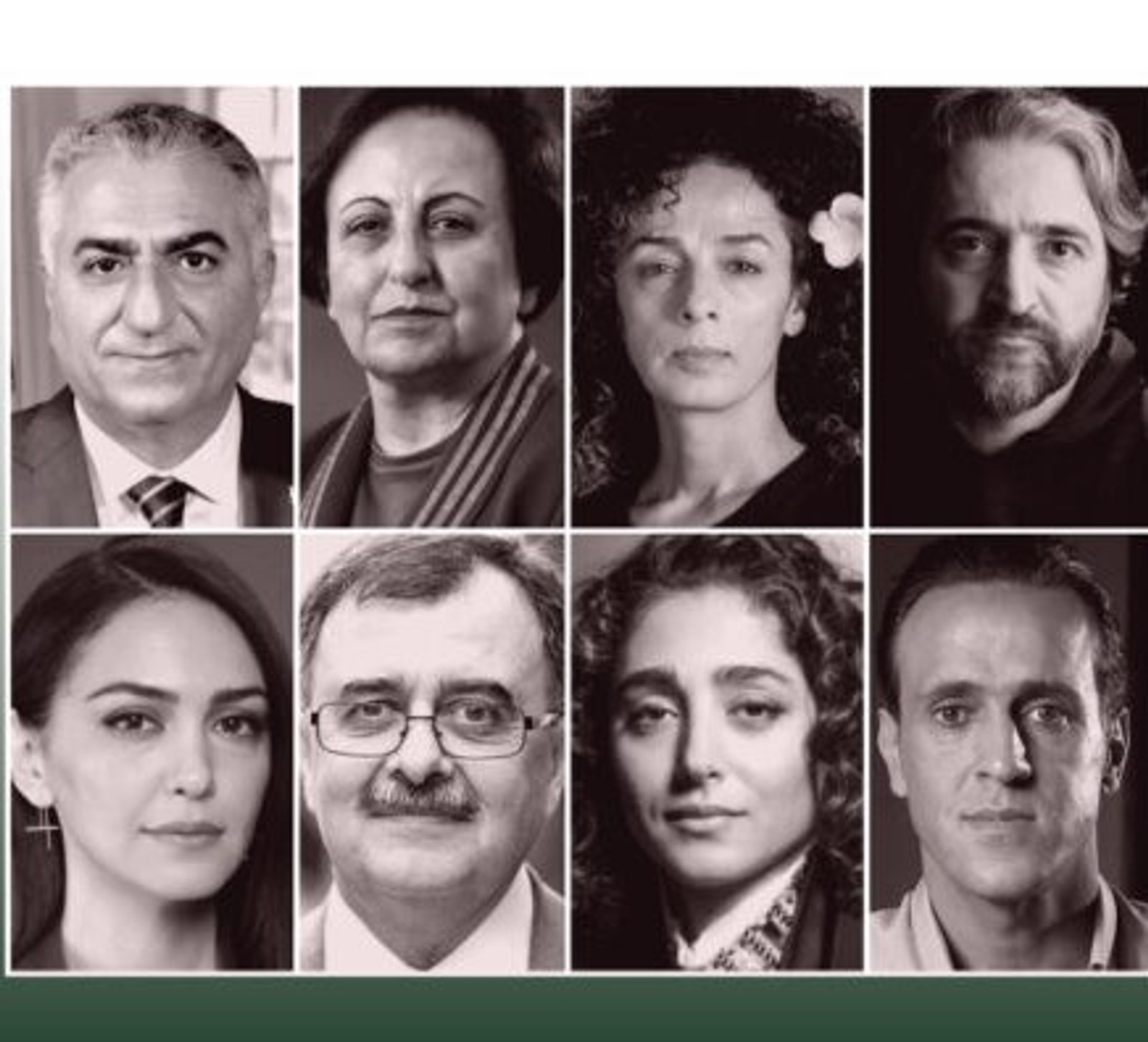 Leading opposition figures in the diaspora representing the protest movement. Clockwise - Prince Reza Pahlavi, Shirin Ebadi, Masih Alinejad, Hamed Esmaeilion, Nazanin Boniadi, Abdullah Mohtadi, Golshifteh Farahani and Ali Karimi