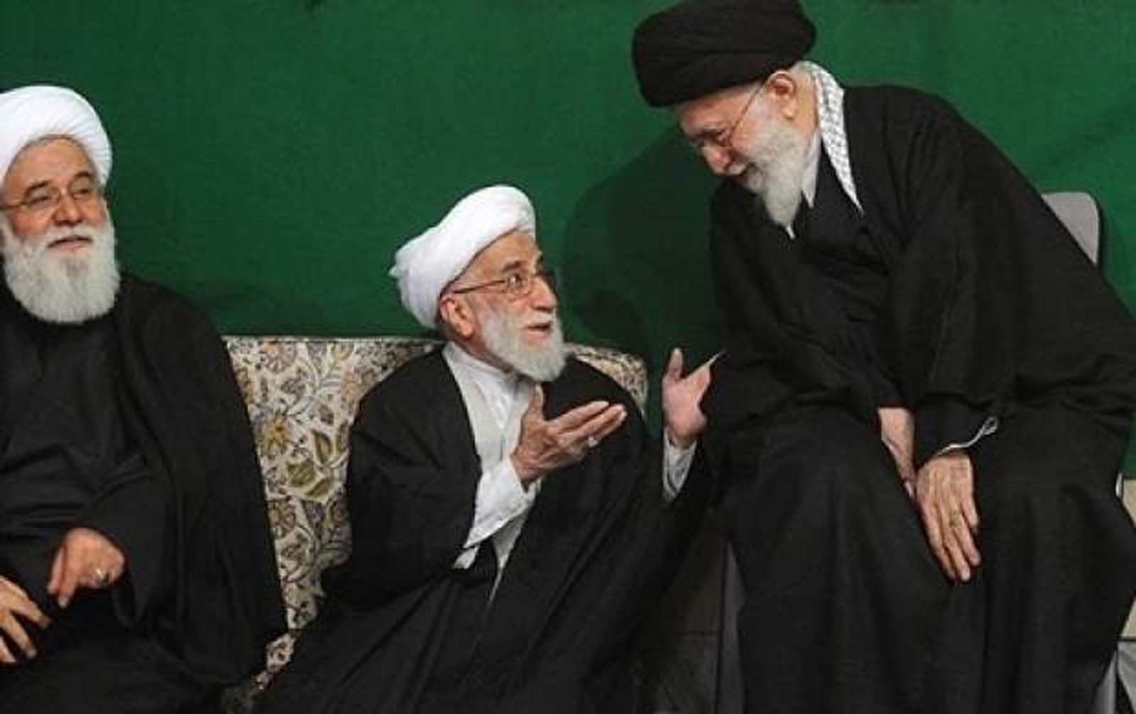 Ayatollah Ahmad Jannati (center) with Supreme Leader Ali Khamenei (right) and Ahmad Alamolhoda, Khamenei’s representative in Mashhad (undated)