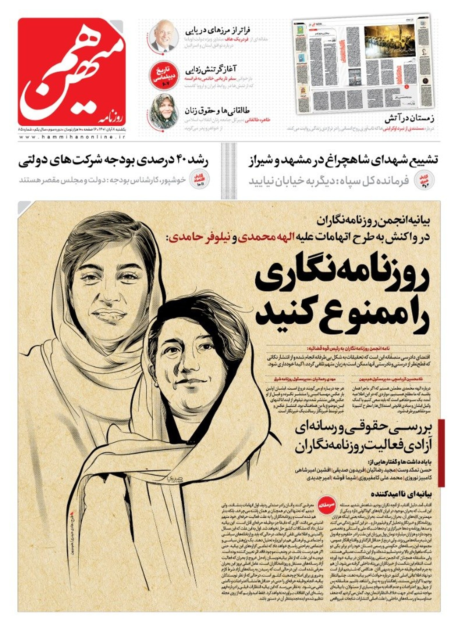 The two journalists – from reformist Iranian dailies Shargh and Ham-Mihan – have been imprisoned for about 300 days because the regime blames them for the nationwide protests that followed the death of the 22-year-old woman.
