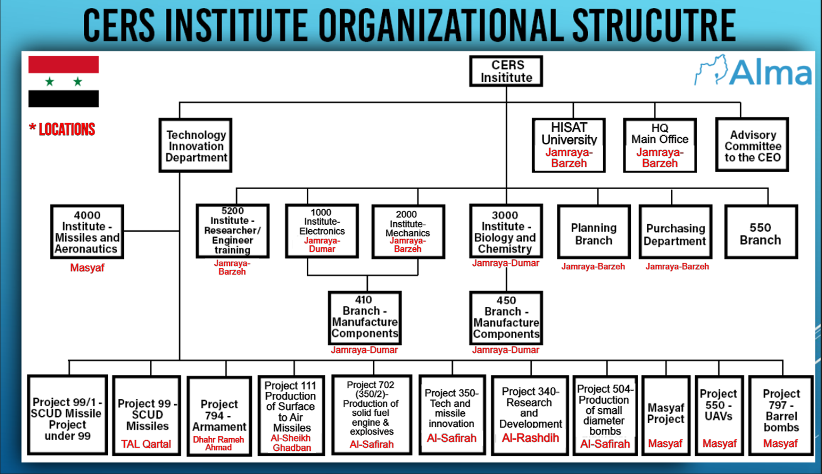 Operations are centered around the CERS Center, which is the heart of Syria's military industry. Established in 1971, the institute has transformed into a collaborative platform involving Syria, Iran, and Hezbollah since the beginning of the civil war, according to Alma's statement.