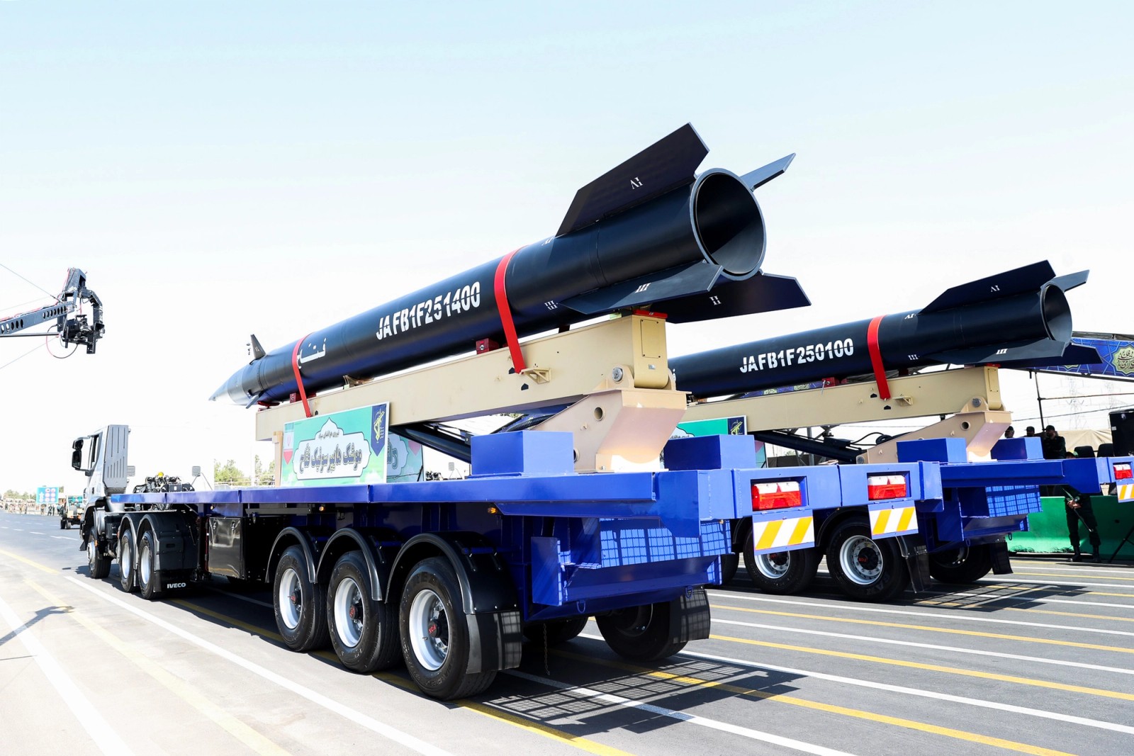 Fattah missiles on display during a military parade along with top military officials south of Tehran on September 22, 2023