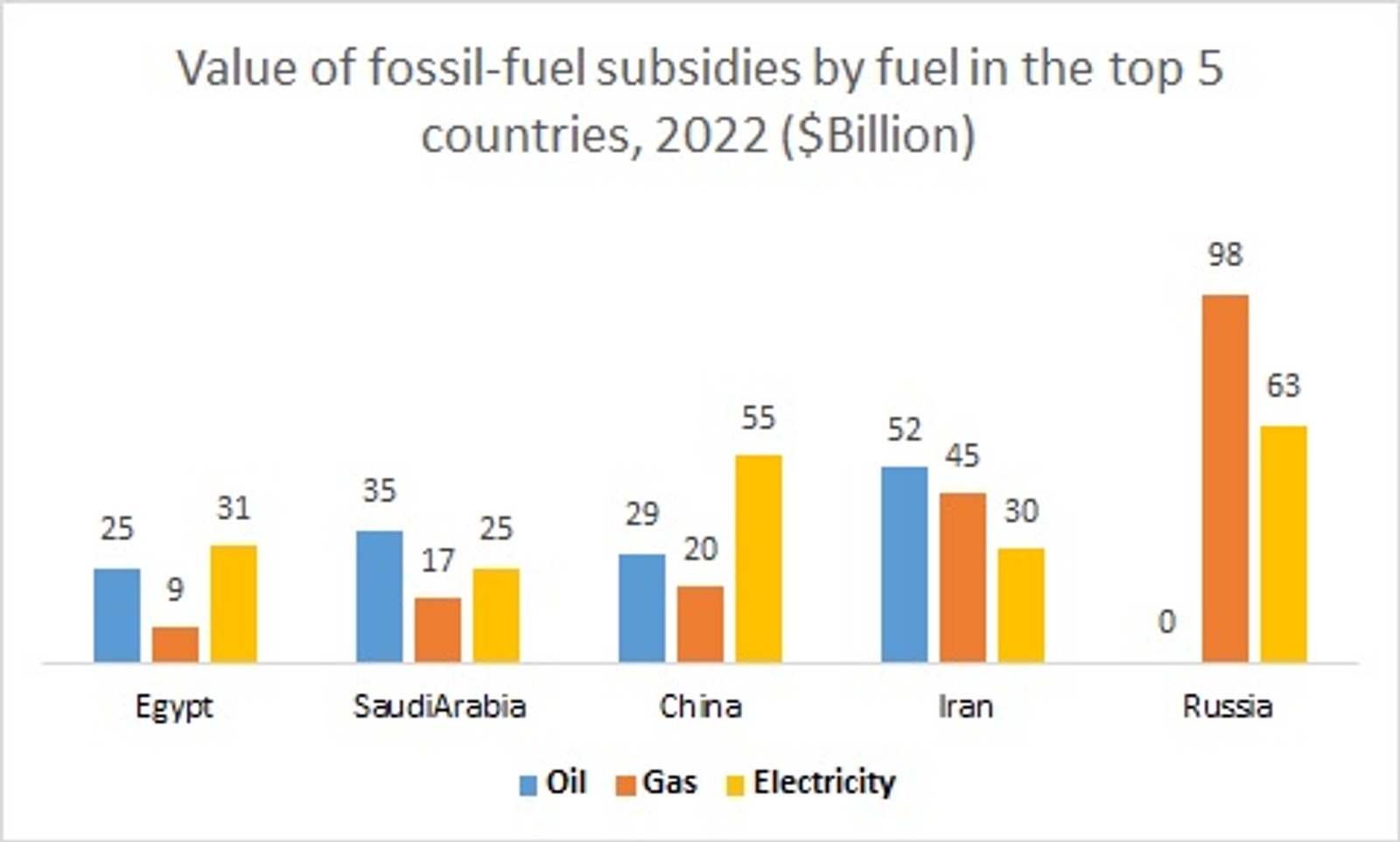 Iran also had subsidies of $30 billion for electricity and $52 billion for petroleum products last year. Iran with $127 billion fossil fuel subsidies ranks the second after Russia in the world.