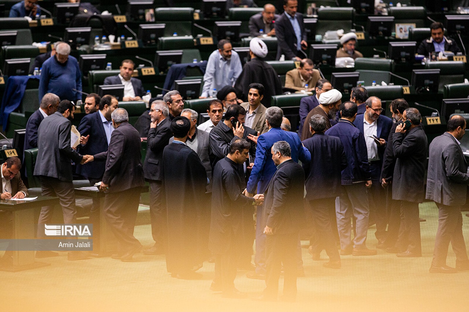 Lawmakers argue during session of the Iranian parliament on December 19, 2023.