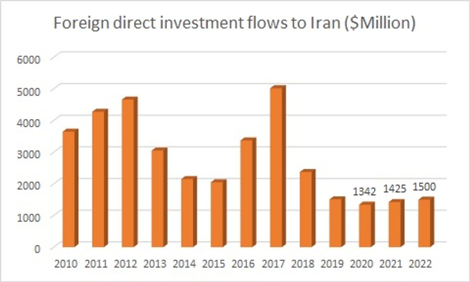 Foreign direct investment flows to Iran ($Million)