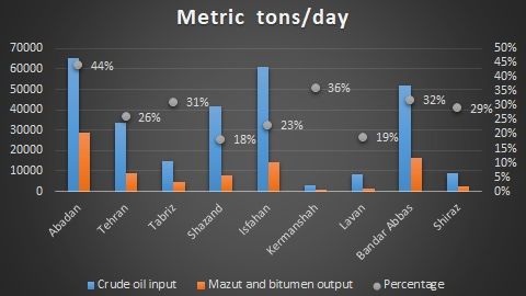 Iran's refineries not only convert 30 percent of crude oil into mazut and bitumen, but they also produce highly sulfur-laden fuel, with a sulfur content of 3.5 percent. This sulfur level exceeds the required standards for fuel used in ships navigating open seas by sevenfold. Despite its environmental hazards, Iran utilizes this highly polluting fuel in power plants and industries located within or near urban areas.