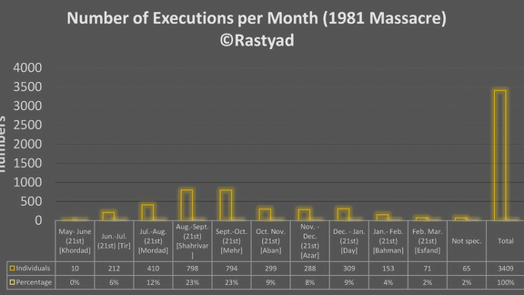 To gain a comprehensive understanding of the 1981 massacre, it is essential to delve into the research conducted by the Rastyad Collective and the revelations it has brought forth. Their site documents over 3500 executions across 85 cities, shedding light on the tragic fate of many. Their meticulous examination of the events surrounding the massacre affirms the widely held belief that it transpired within a legal vacuum, with the state resorting to extra-legal means of violence to assert control. Furthermore, their findings shed light on the significant impact of this massacre in shaping the legal framework of Iran's theocratic regime. By perpetrating such egregious acts, the regime instilled fear and apathy among the populace, solidifying its grip on power and stifling dissent.